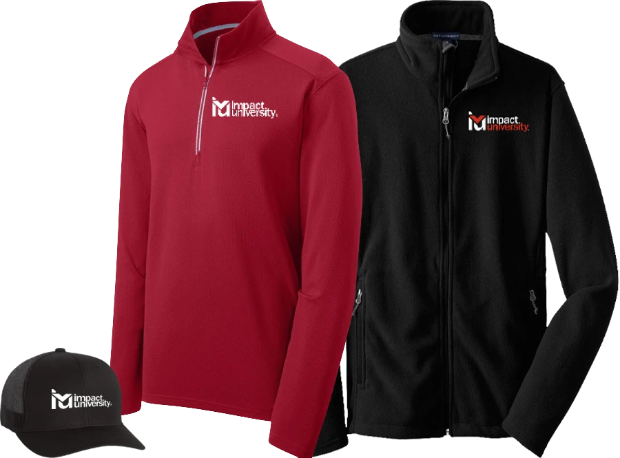 Impact University is excited to now offer ImpactU Gear! We offer Hoodies, Polo, T-shirts, and onesies ranging from sizes small to 5xl, and in our school colors: red, black, and gray. We have hats of all styles, water bottles, and coffee mugs. Show your school unity by wearing your exclusive ImpactU Gear! Shop now!